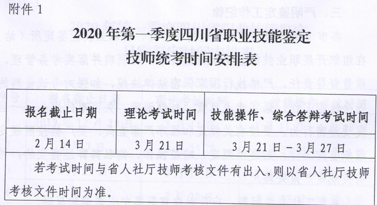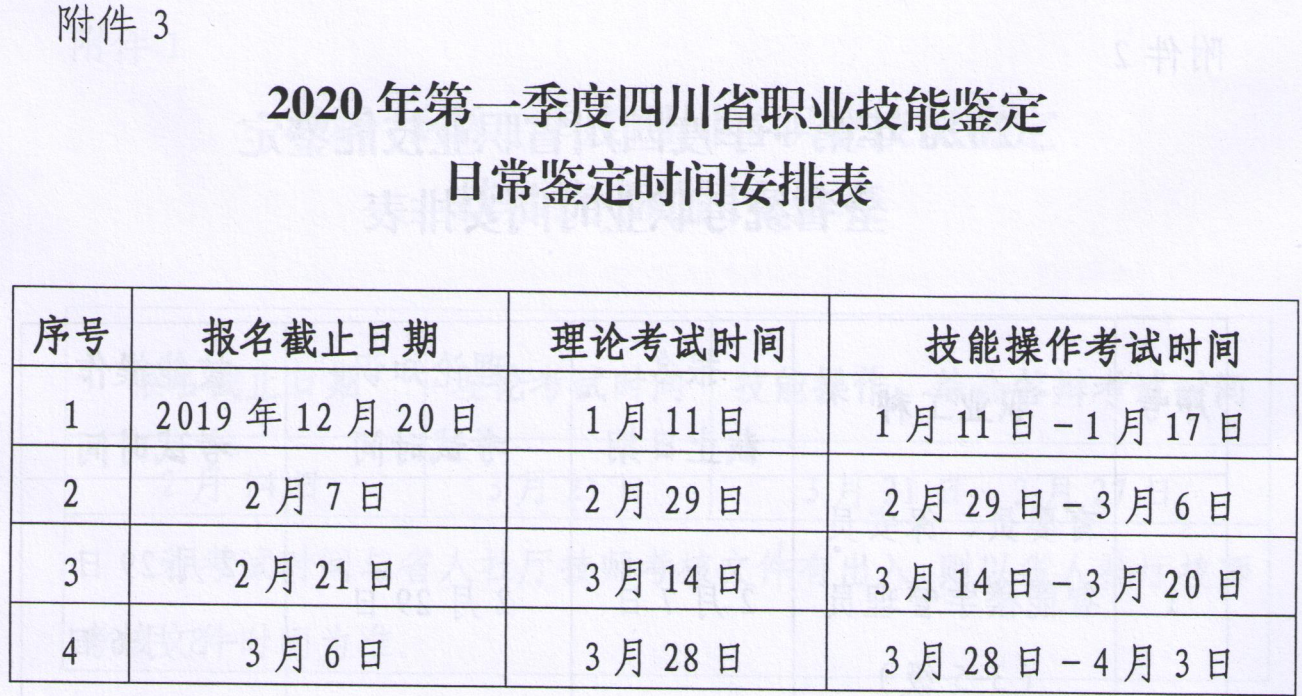 四川省人社廳2020年1-3月職業(yè)資格考試時間安排